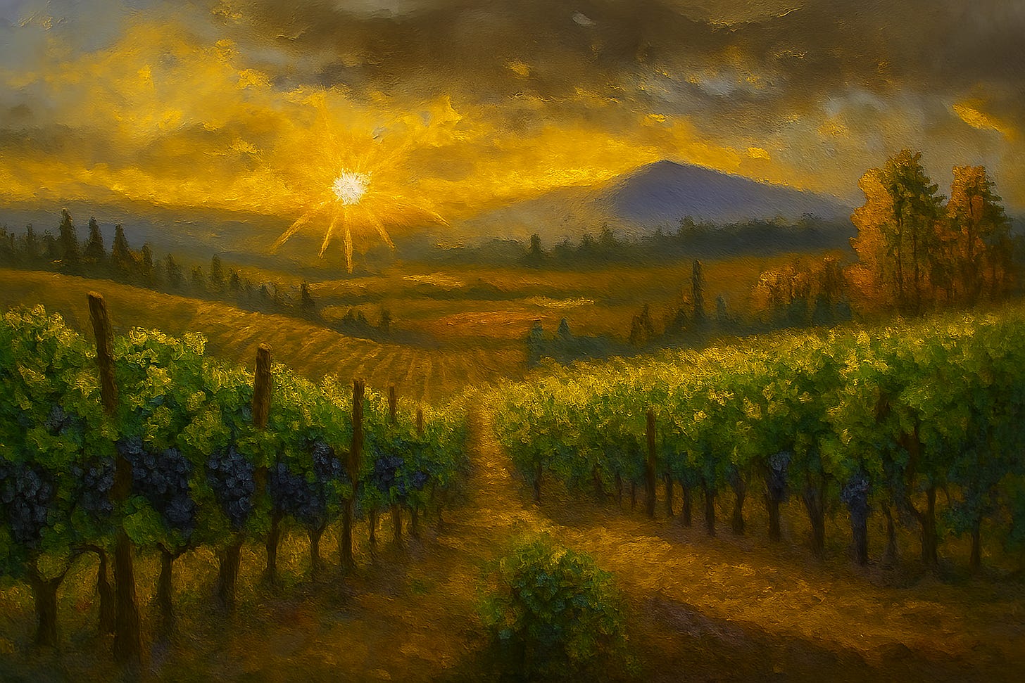 This is how I think of the current moment from the perspective of Oregon’s Willamette Valley. The spectacularly moderate and comfortable summer is at an end, and on the short horizon looms the grim winter months of grey, drizzle, and chill. But I’ve come to love this moment here in Oregon when the harvest of Pinot Noir and Chardonnay surges, the sun squeezes out shorter and cooler bursts of joy, and the wardrobe begins to shift from T-shirts to pullovers.